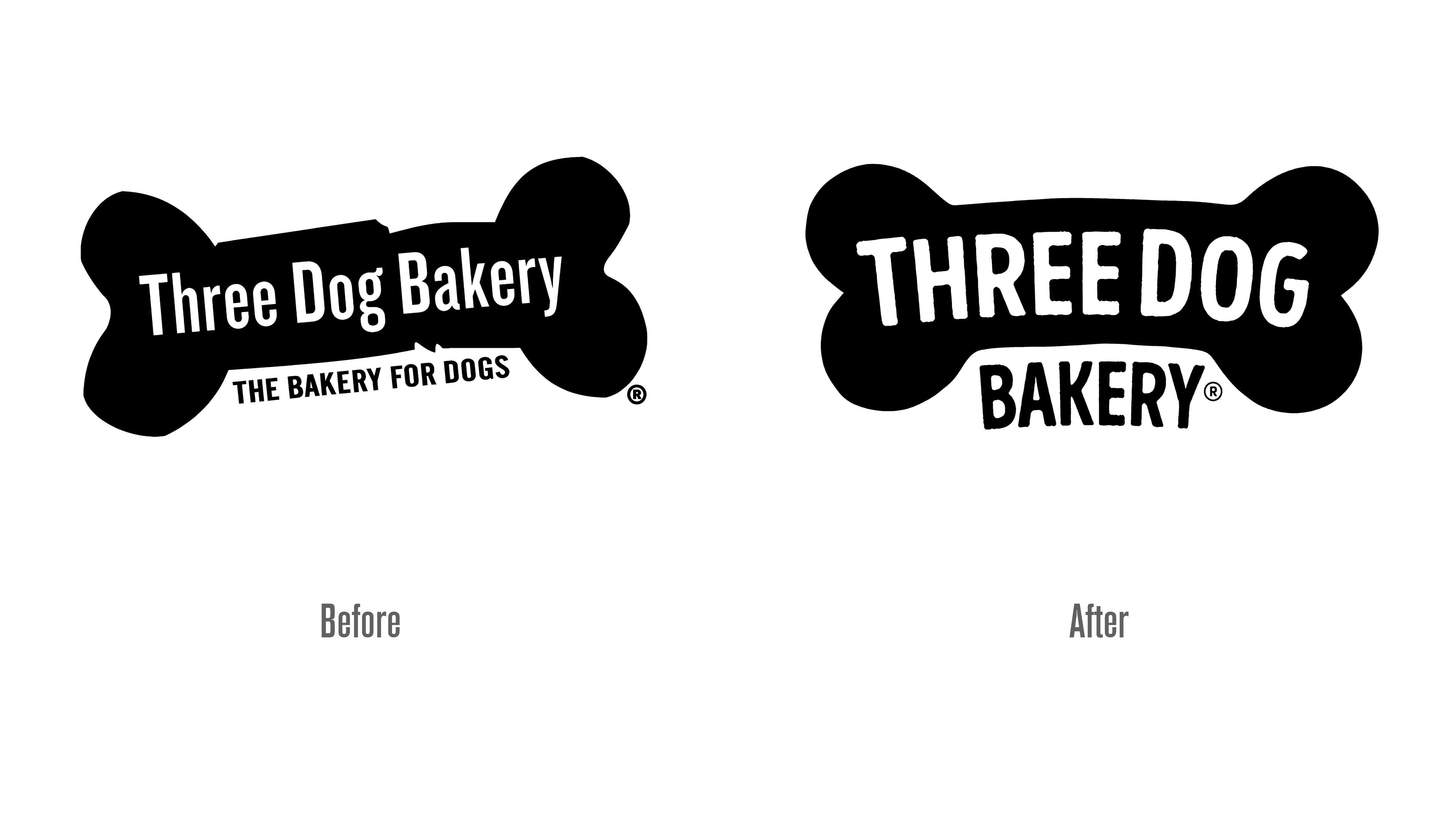 新 LOGO 延續了消費者熟悉的骨頭造型,將文字布局調整為上 “Three Dog” 下 “Bakery” 的結構,字體加粗并增加流暢曲線,讓品牌名稱更醒目易讀。這種設計既保留了品牌核心記憶點,又通過現代字體語言傳遞出活力感。