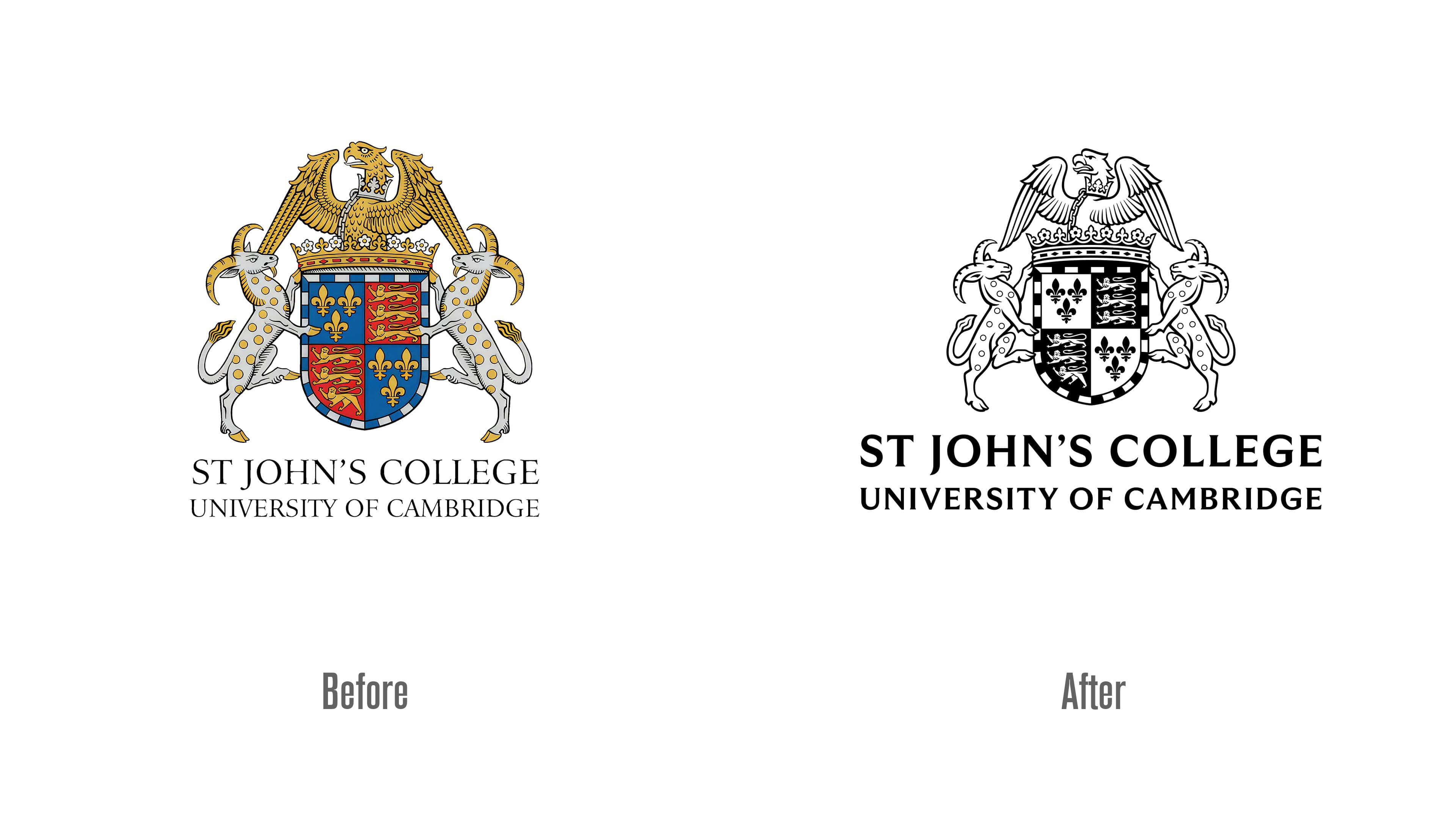 學(xué)院此前的舊徽章充滿紋章學(xué)元素,包含銜著盾牌的雄鷹、神話生物、皇家王冠以及大量次要裝飾細節(jié),雖完整傳遞了學(xué)院的歷史傳統(tǒng),但在現(xiàn)代傳播中暴露出明顯問題。標設(shè)網(wǎng)認為,傳統(tǒng)紋章類 LOGO 的復(fù)雜構(gòu)圖在數(shù)字環(huán)境中易出現(xiàn) “閱讀障礙”,尤其是縮小應(yīng)用于網(wǎng)頁、社交媒體等場景時,細節(jié)會嚴重丟失,無法滿足現(xiàn)代品牌對視覺清晰度和傳播效率的需求,這也是許多歷史悠久的教育機構(gòu)選擇 LOGO 升級的重要原因。